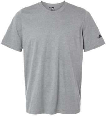 Adidas Men's Blended regular fit T-Shirt made of 4.1 oz./yd² (US), 6.8 oz./L yd (CA), 65/35 recycled polyester/cotton with ribbed collar.
