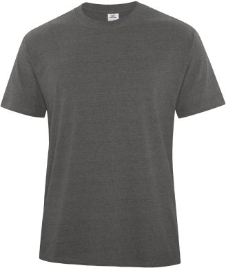 ATC™ EARTH WASH™ Everyday T shirt made of 9.1-oz, 60/40 cotton/polyester with a single dye process with compacted yarns to minimize shrinkage with taped neck and shoulders for comfort and durability and side seamed.