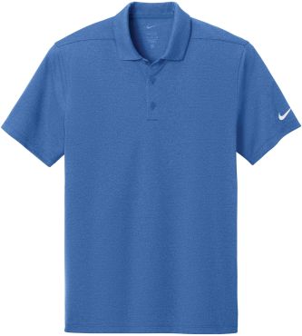 NIKE Dri-FIT Smooth Heather Polo can elevate your golf game, your office game, and every game in between. Fabric 9.1-oz, 100% polyester fabric with at least 75% recycled content with Dri-FIT moisture management technology. Comes with 3-button placket and rolled forward shoulder seams and contrast heat transfer Swoosh logo at left sleeve, plus Nike embossed buttons.